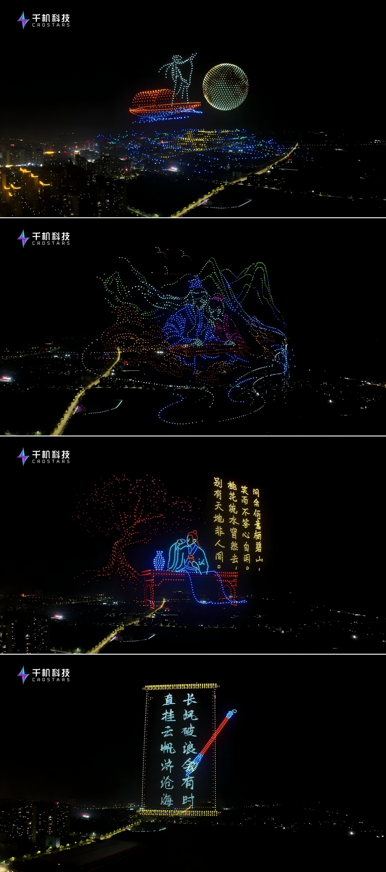 绣口一吐,就是半个盛唐。千机齐飞,再现盛世华章。当课本上的诗词,化作夜空中最璀璨的星辰。千机科技以无人机技术推动安陆文旅发展,打破了传统文旅活动的表现形式,更搭建起古今对话的桥梁。让千年诗韵在新时代绽放更绚丽的光彩,吸引更多人走进安陆、读懂李白。