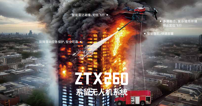 超高层建筑火灾救援是检验城市治理能力的“极限压力测试”。而行业需求则指向以无人机为核心、空地协同为框架、国产化装备为根基的下一代应急救援体系,当城市向上生长,安全防线必须同步攀升。唯有通过持续的技术迭代、跨部门协同演练和政策护航,方能将“中国方案”推向全球高楼林立的城市丛林。ZTX260系留无人机系统此次通过国家级标准实飞检验,突破的不只是150米的物理高度,更是中国智造在高端消防领域的话语空间。国家《十四五应急救援规划》中明确要求“重点突破百米级空中灭火技术”,此次突破,标志着国产装备首次具备替代进口实力。