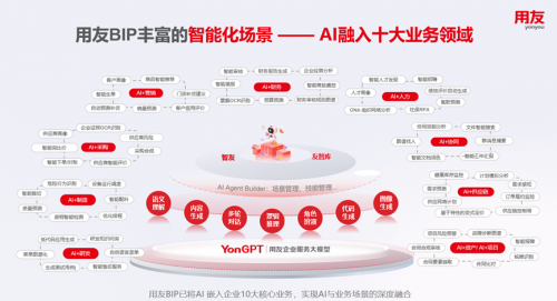 作为全球领先的企业软件与智能服务提供商,用友持续布局AI技术研发。其中,用友战略投资、倾力打造的全新一代产品——用友BIP实现了企业软件的一次换代,为企业带来全新价值。用友BIP依托创新构建的数智新架构,实现了“AI×数据×流程”的原生一体化,提供从数据层、模型矩阵层、平台层到应用层的完整能力体系,在业务运营、人机交互、知识与应用生成等多场景实现AI在企业的落地,全面赋能企业智能化升级。
